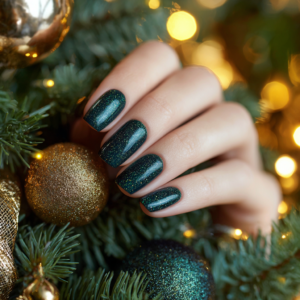 5. Para um efeito ainda mais festivo, adicione um top coat com glitter ou um top coat com efeito especial e, em seguida, catalise.